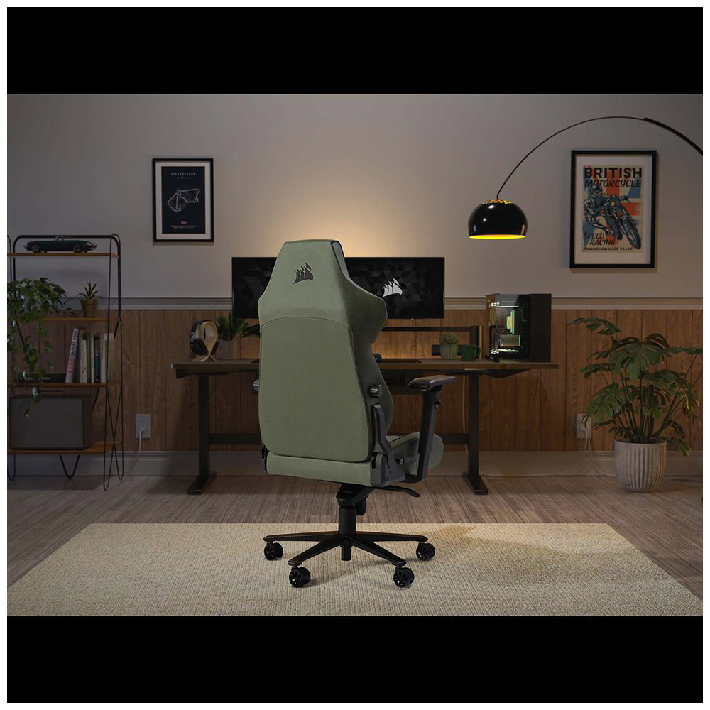 TC500 LUXE(ラックス)は、幅広シートでゆったりと座れるエルゴノミックチェアです。革のような高級感のあるファブリック(布)素材を採用し、長時間リラックスした姿勢で座ったり、あぐらをかくこともできます。フラットな座面設計と座面高さ48〜58 cmの幅広い調整範囲、最大215度の回転にも対応するOMNIFLEXアームレストによりデスクの高さや身長などお好みに合わせて快適な姿勢を見つけることができます。ダークグリーン、ブラック、オフホワイトの落ち着いたカラーリングでリビングなどのインテリアにも合わせやすく、Web会議やリモートワークにも最適です。