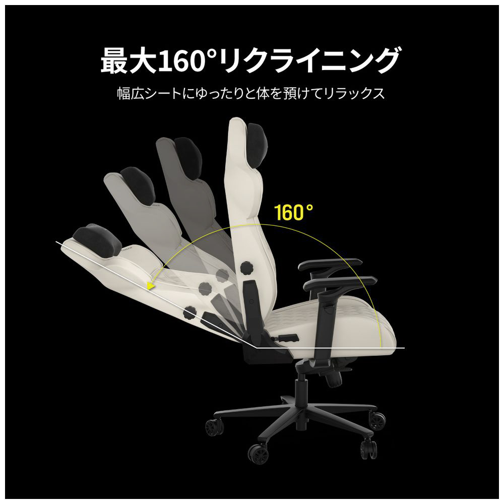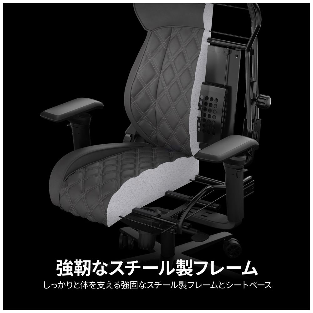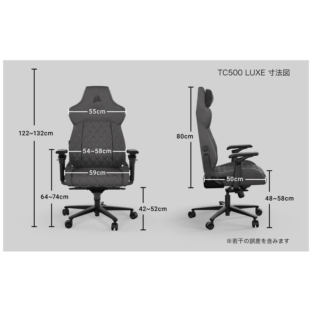 TC500 LUXE(ラックス)は、幅広シートでゆったりと座れるエルゴノミックチェアです。革のような高級感のあるファブリック(布)素材を採用し、長時間リラックスした姿勢で座ったり、あぐらをかくこともできます。