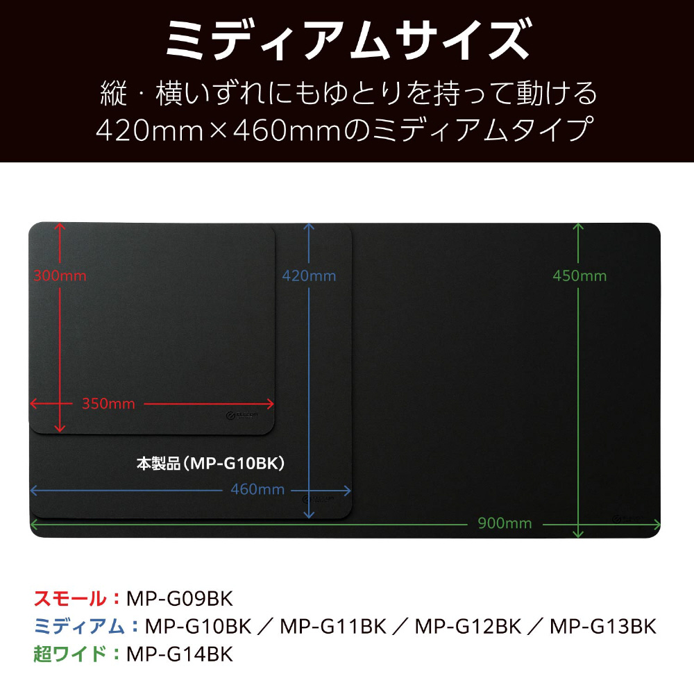 ゲーミングマウスパッド [460x420x3mm] (細目クロス/コントロール/ミディアム) ブラック MP-G10BK
