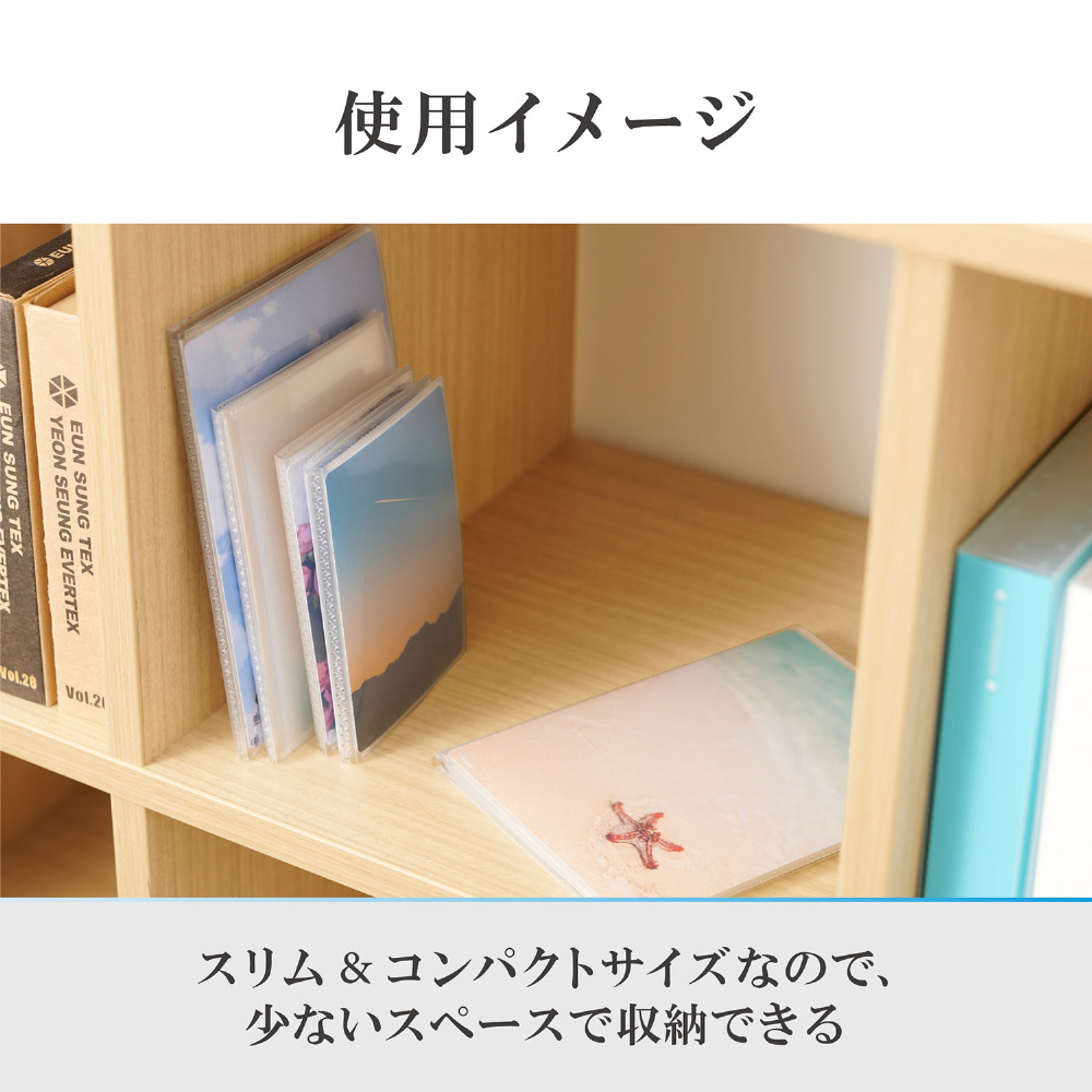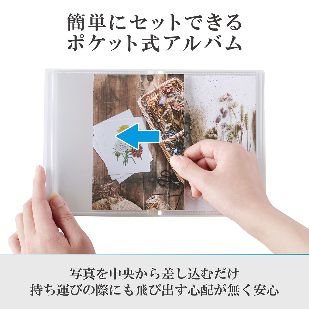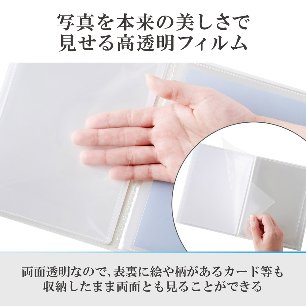 収納ポケットは、写真本来の色をそのまま美しく見せる透明度の高いフィルムを採用しています。