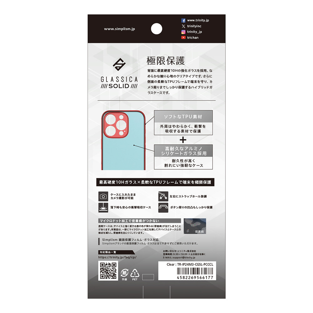iPhone 16 Pro [GLASSICA Solid] 超精密設計 背面ガラスケース クリア TR-IP24M3-CGSL-PCCCL