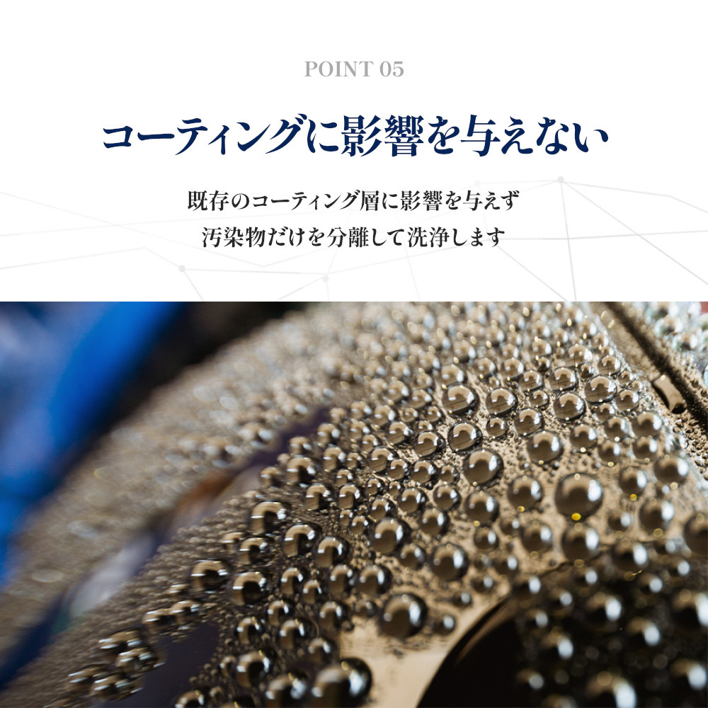 既存のコーティング層に影響を与えず、汚れだけを強力に洗浄します。