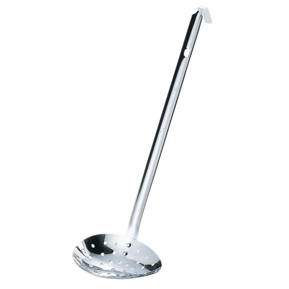 片側に注ぎ口がついている横口スキンマー。器にもこぼさず注げる便利な形状です。お鍋から具材だけ取り出す時、茹でた野菜を取り出す時など、汁や水分を切りたいときに便利です。【製品の特長】■ 横口の形状は、こぼしにくく、注ぎやすい。■ 柄もステンレスなので、劣化も少なく長く活躍してくれます。■ 柄の先がフックになっているので、鍋の縁に掛けたり、収納の際に吊るす事が可能です。