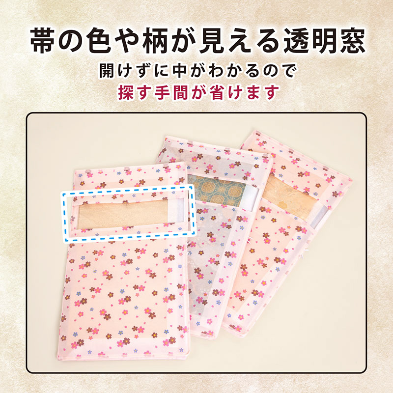 サイズ/約64×36cm、カラー/ピンク系、柄/さくら柄、内容/3枚、収納目安(袋1枚あたり)/帯:約1〜2本(厚みにより異なる)、材質/ポリプロピレン・ポリエチレン