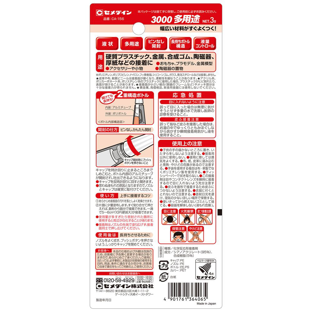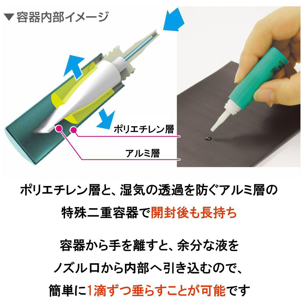 ・中粘度で幅広い素材によく接着します。簡単・安心・便利を実現した特殊容器使用の液状の瞬間接着剤です。