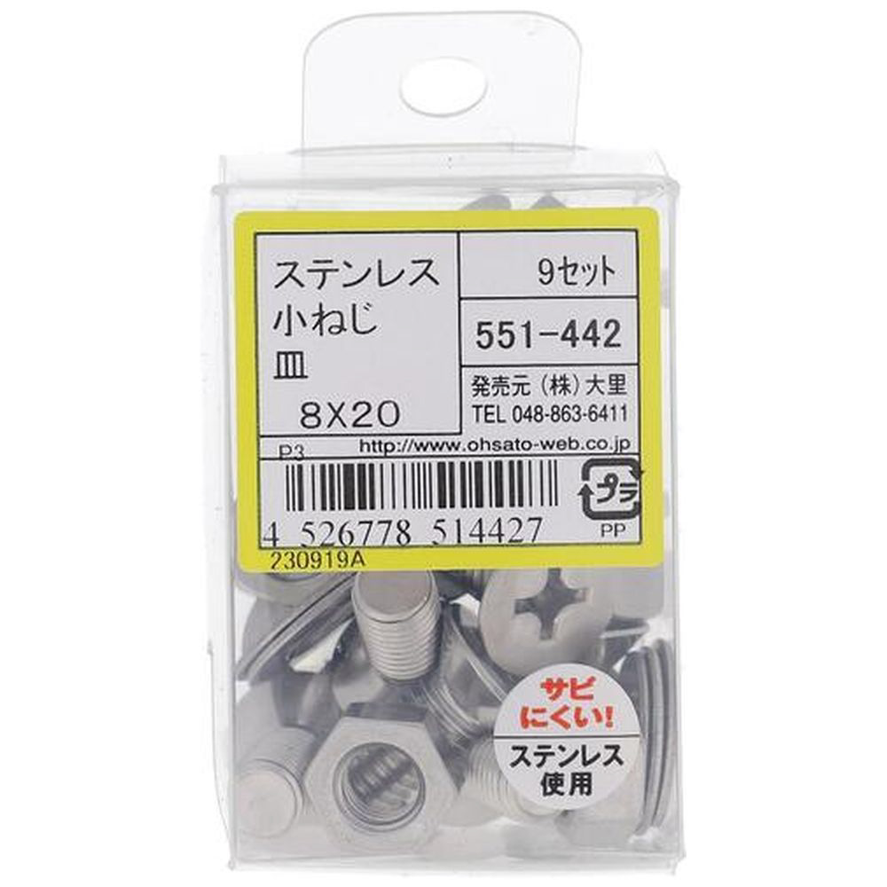 ステンレス小ねじセット皿M8X20