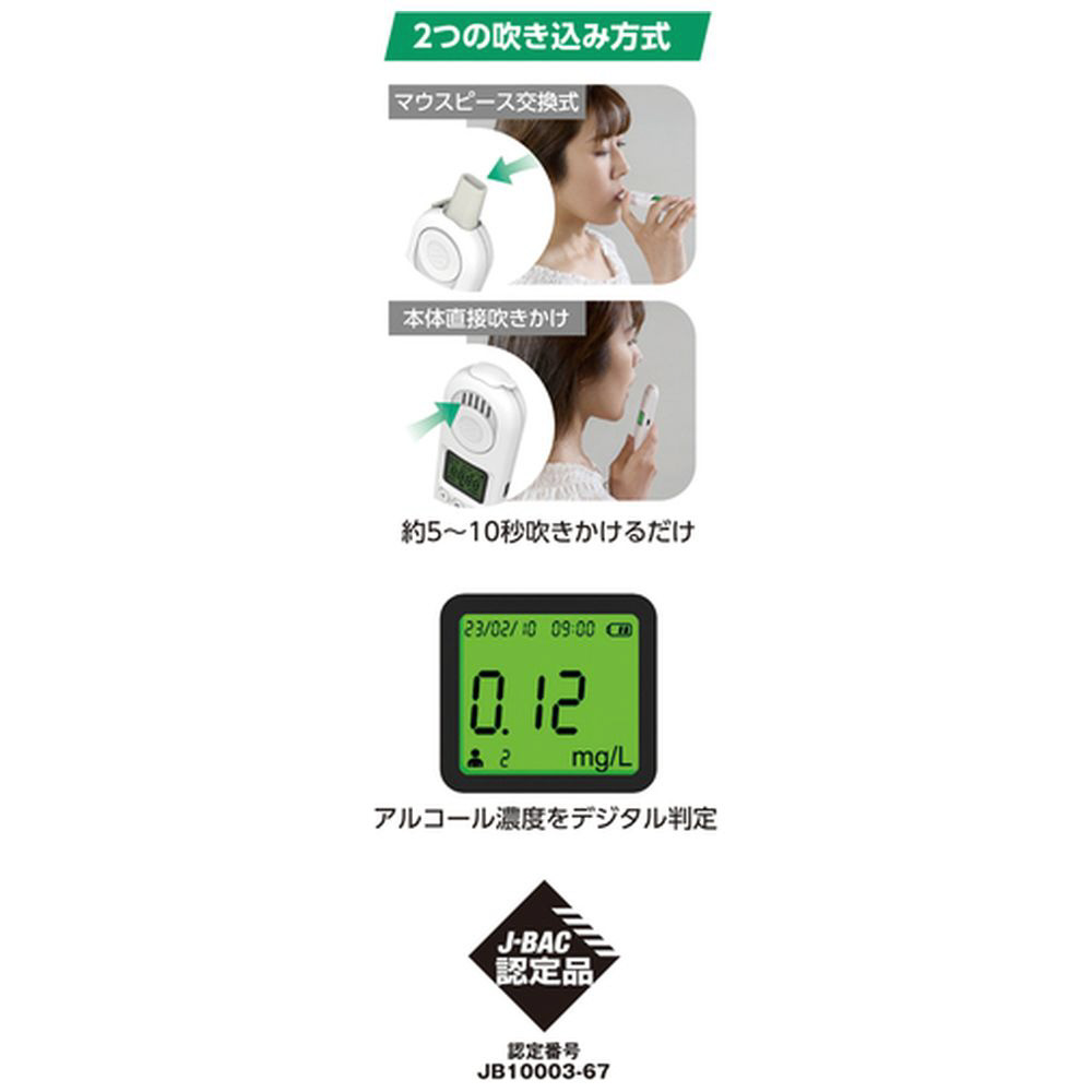 ■息を吹きかけるだけで呼気中のアルコール濃度を測定できます。