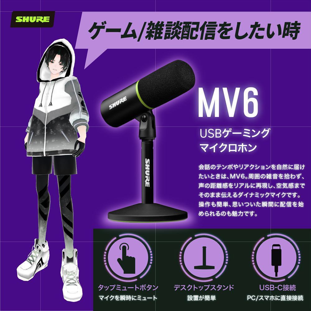 激しくゲームに熱中しているときでも、フォロワーと静かにチャットしている時でも、MV6は常に完璧なオーディオレベルを実現します。