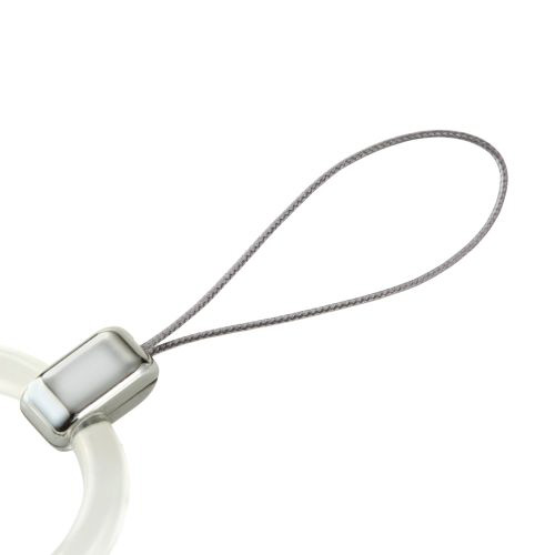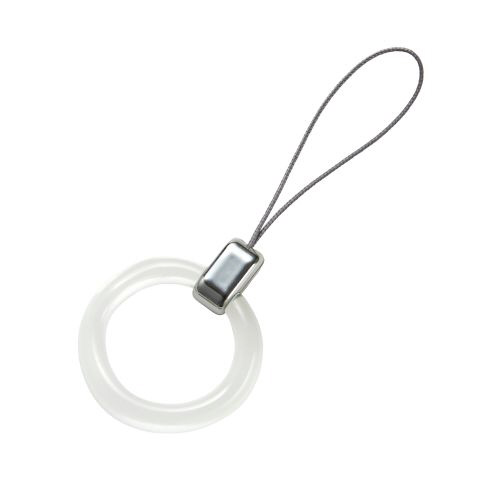 きらめくクリア感が特徴で、アクセサリーのようなフィンガーストラップです。
