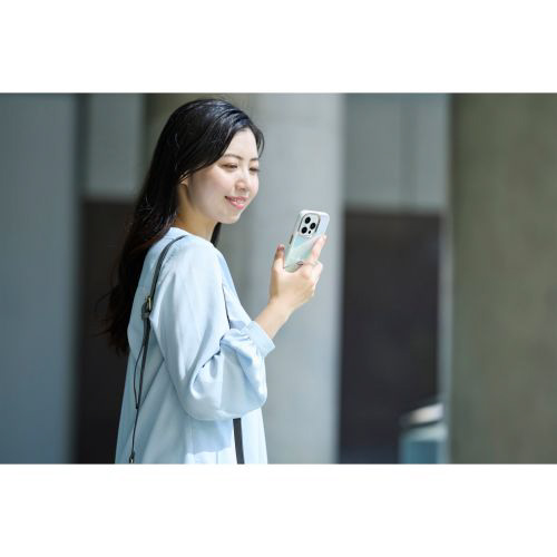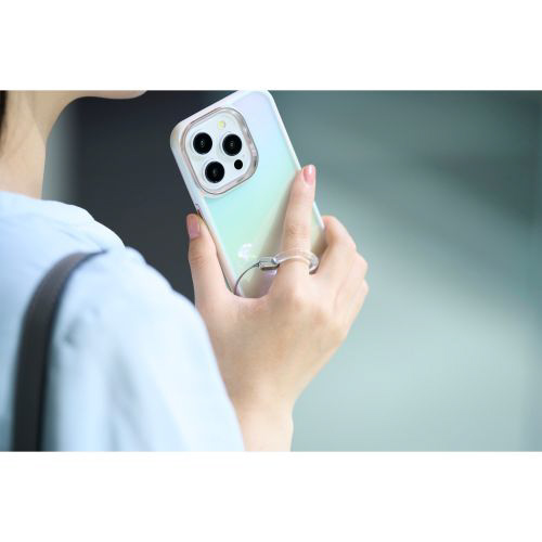 きらめくクリア感が特徴で、アクセサリーのような&meシリーズのフィンガーストラップです。リングは揺らめく水面のようにゆらぎと丸みのあるシルエットで優しい印象を与えます。