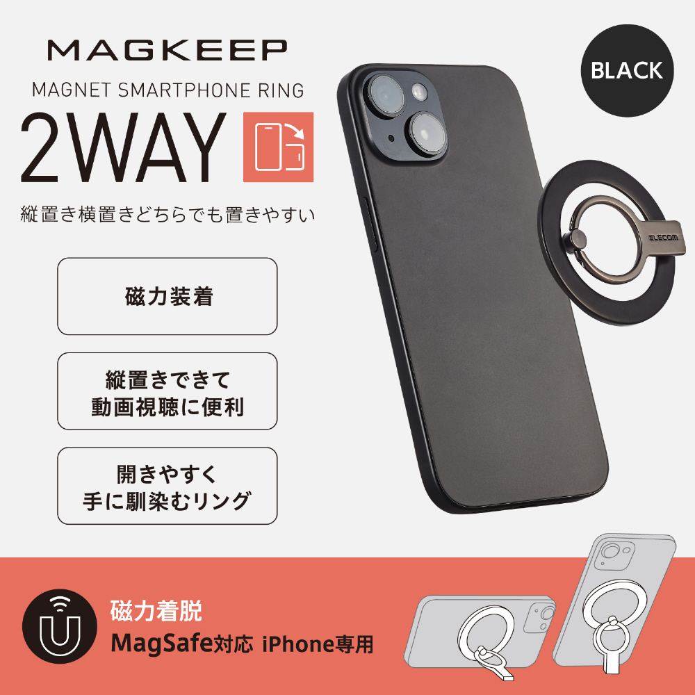 マグネットスマホリング 2WAY ブラック P-STRMKHICRBK