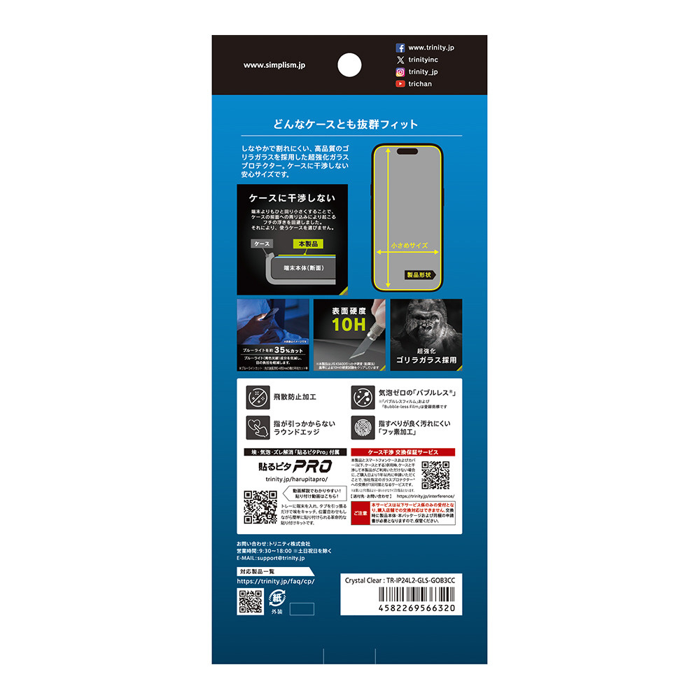 しなやかで割れにくいゴリラガラス採用 ケースに干渉しない安心サイズのプロテクター ブルーライト低減 高透明