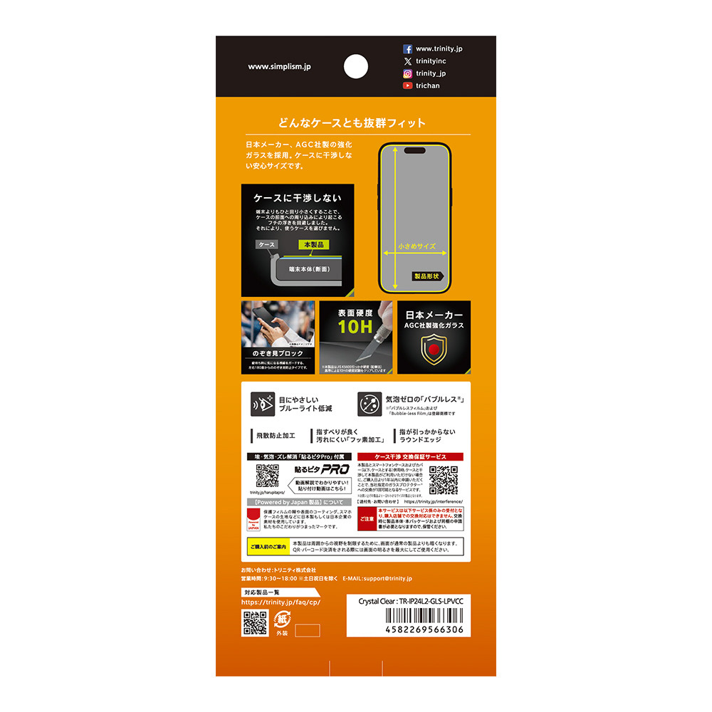 AGC社製強化ガラス採用 ケースに干渉しない安心サイズのプロテクター のぞき見防止