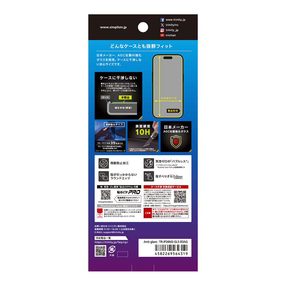 AGC社製強化ガラス採用 ケースに干渉しない安心サイズのプロテクター ブルーライト低減 反射防止