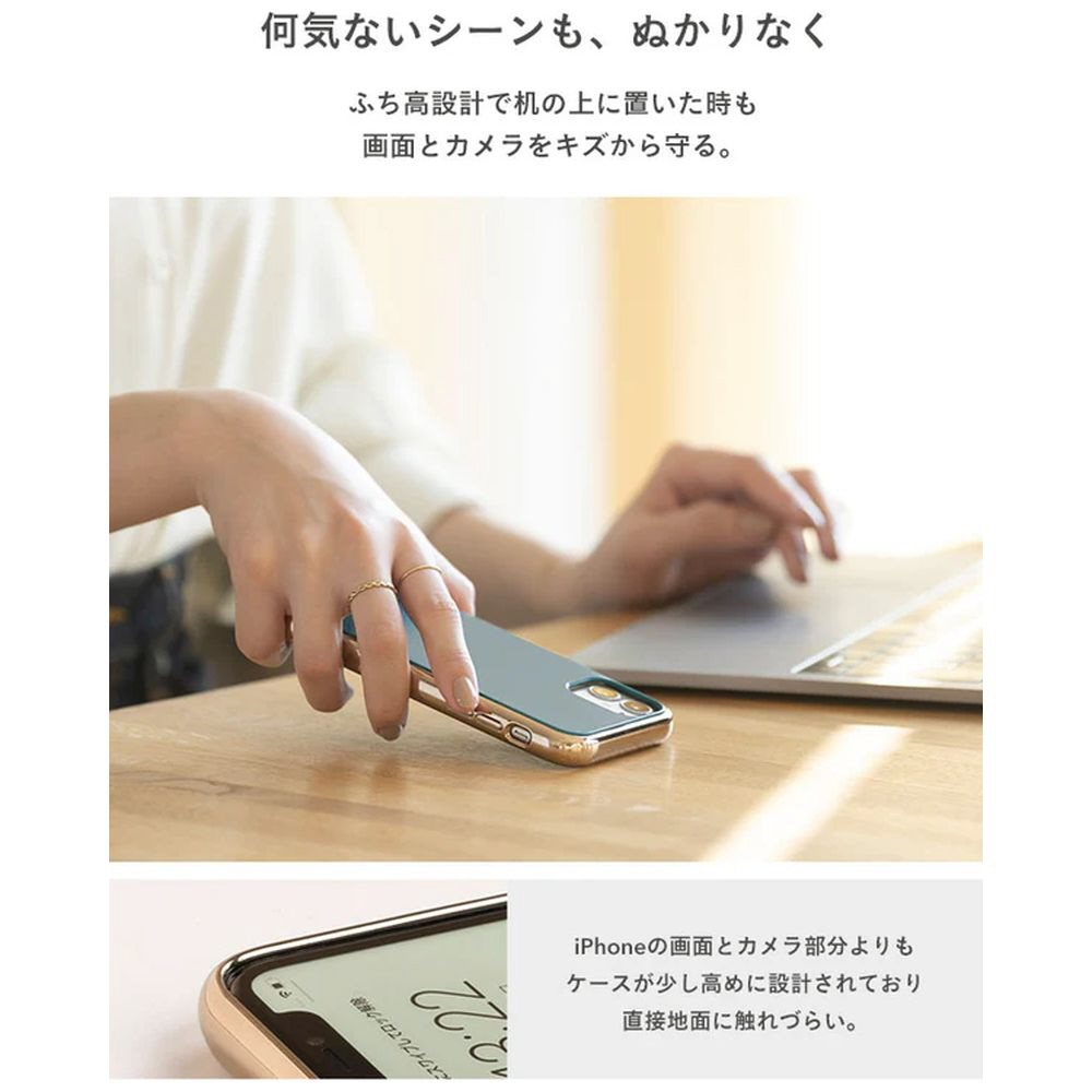 iPhoneの画面やカメラ部分よりもケースのフチが高めに設計されているので直接地面に触れにくく、キズから守ります。