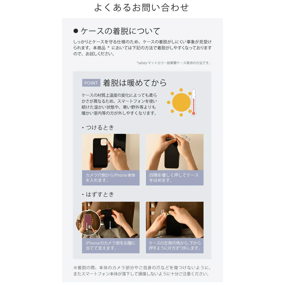お揃いカラーのsalisty スマートフォンリングやAirPodsケースと合わせて統一感のあるコーデも楽しめる。