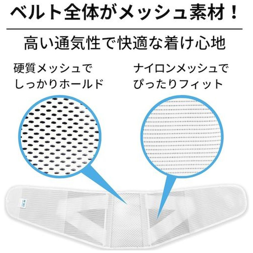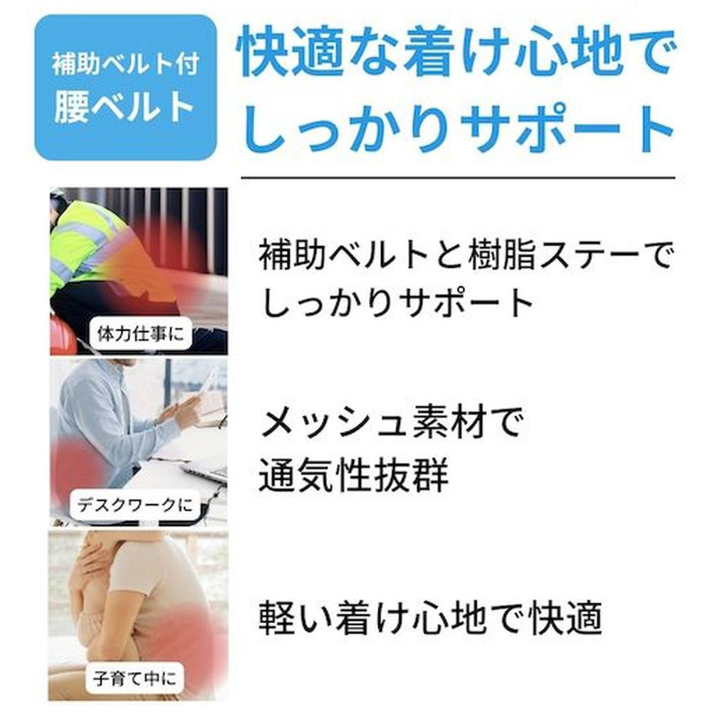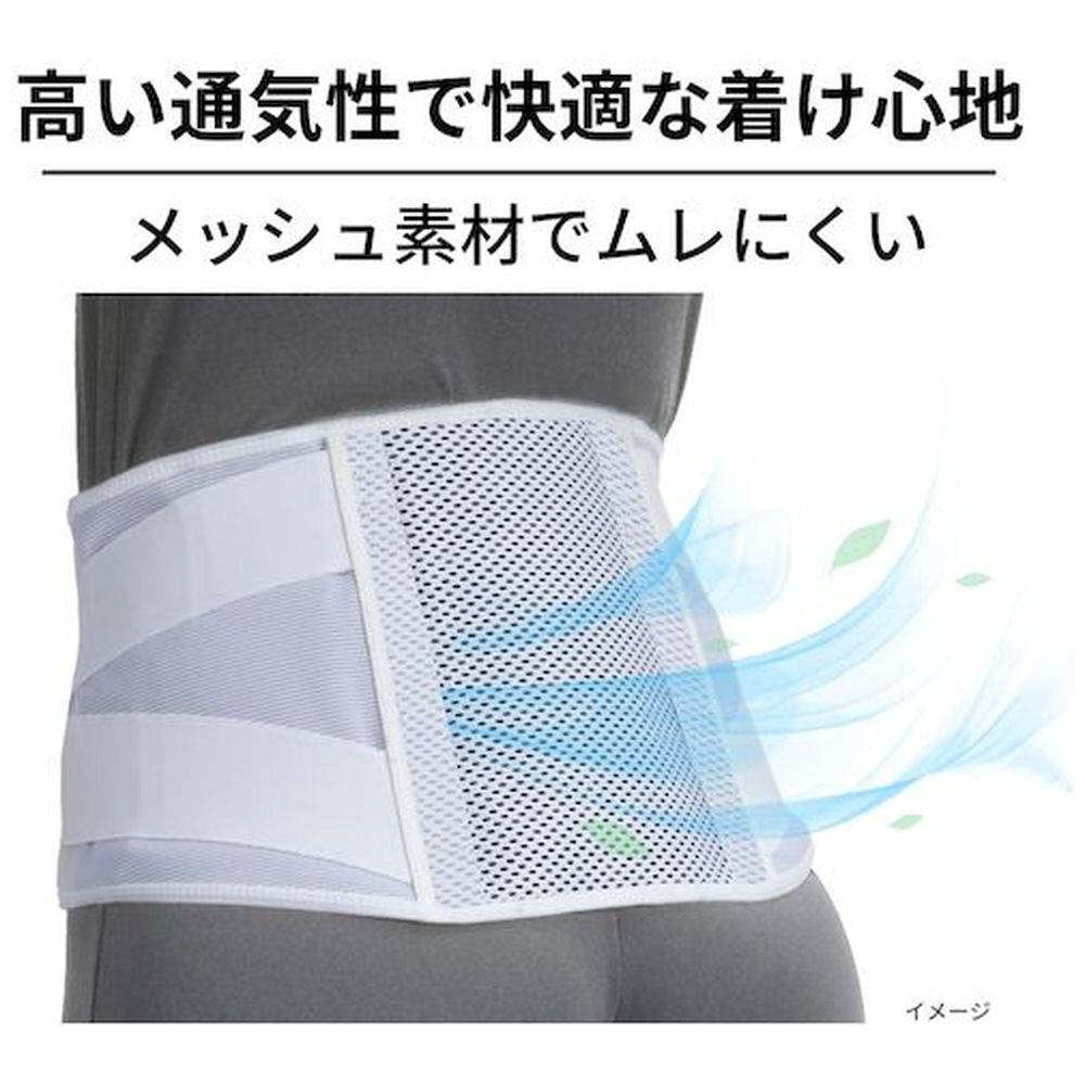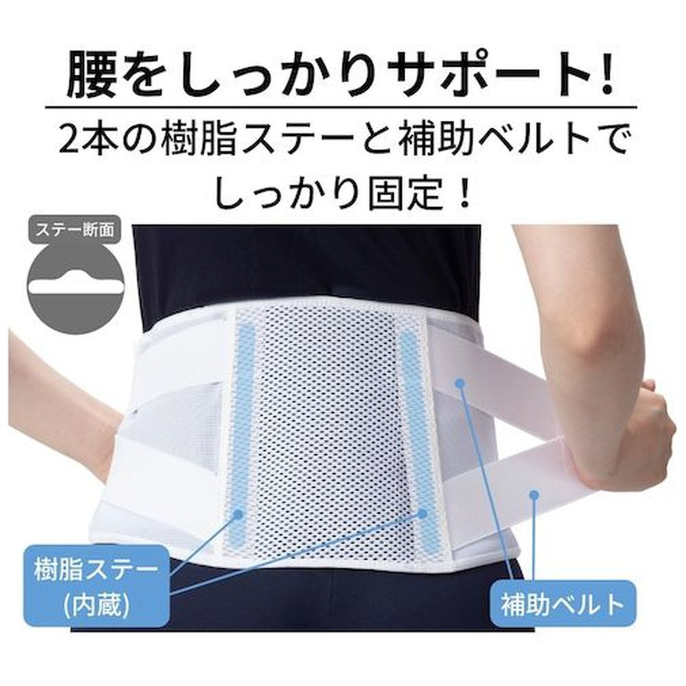 軽量メッシュで快適、補助ベルトが固定力をアップする腰部固定帯です。