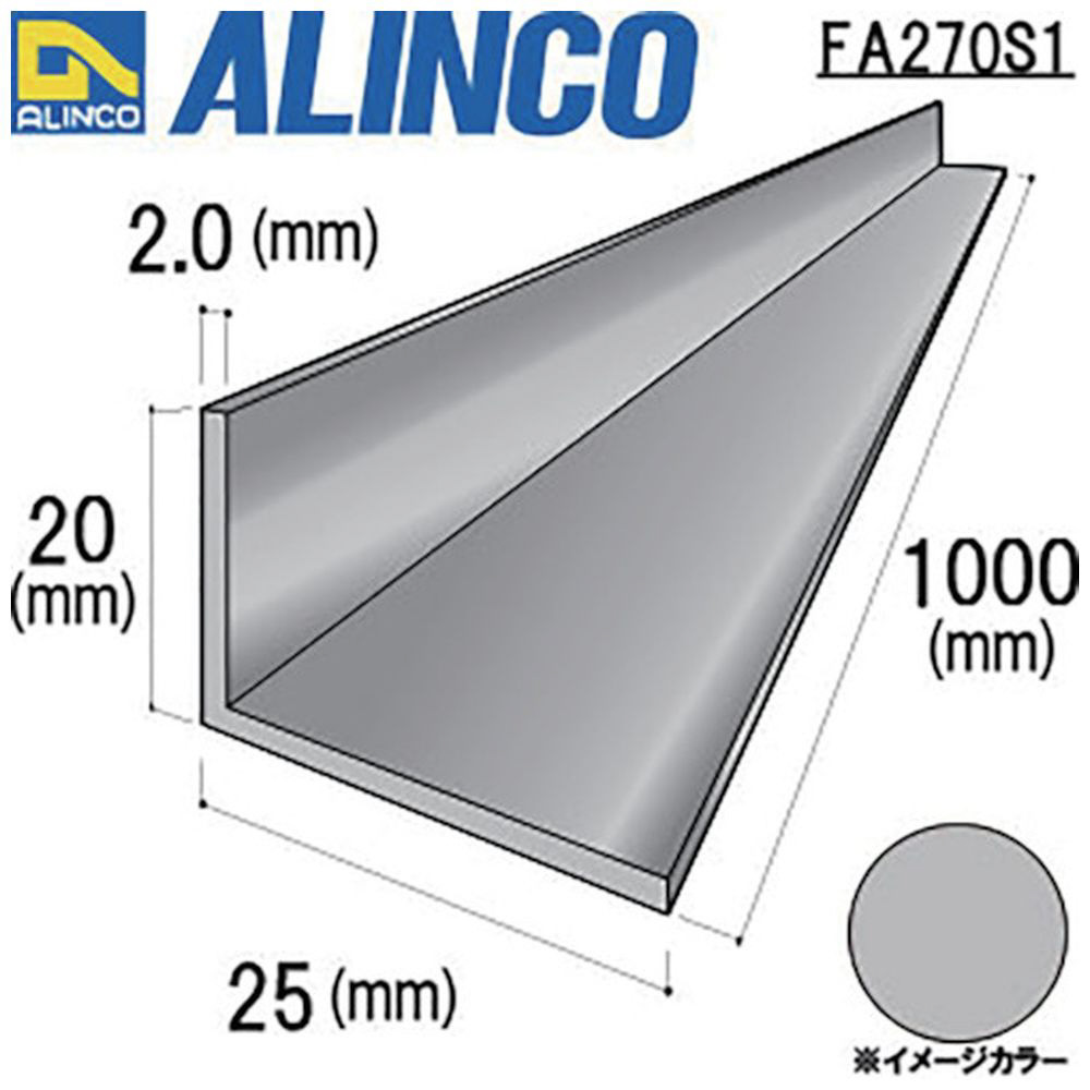 アルミ不等辺アングル 20X25X2.0 シルバー