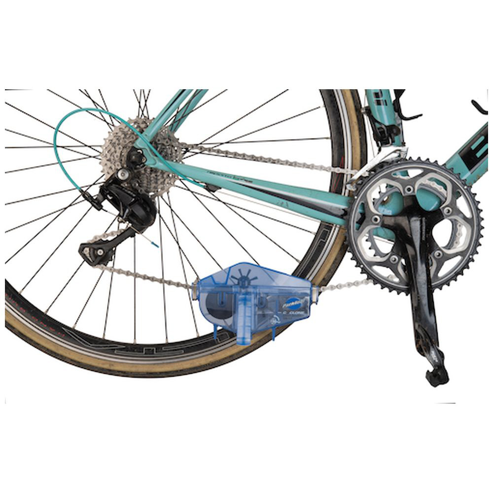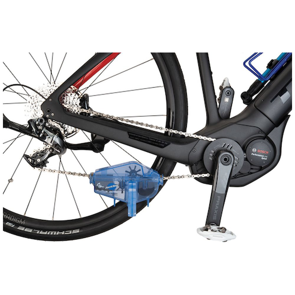 チェーン(シングル、5〜12speed、電動)のブラッシングから、拭き取りまでを行える画期的なチェーン洗浄システムです。