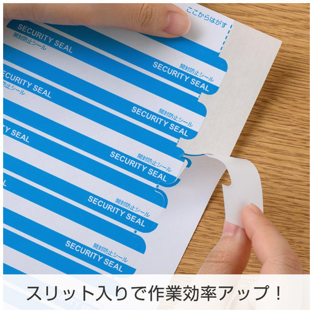 はがそうとすると切り込みから強粘着のシールが破れるので、貼り直しができず、開封したことが判別できます。