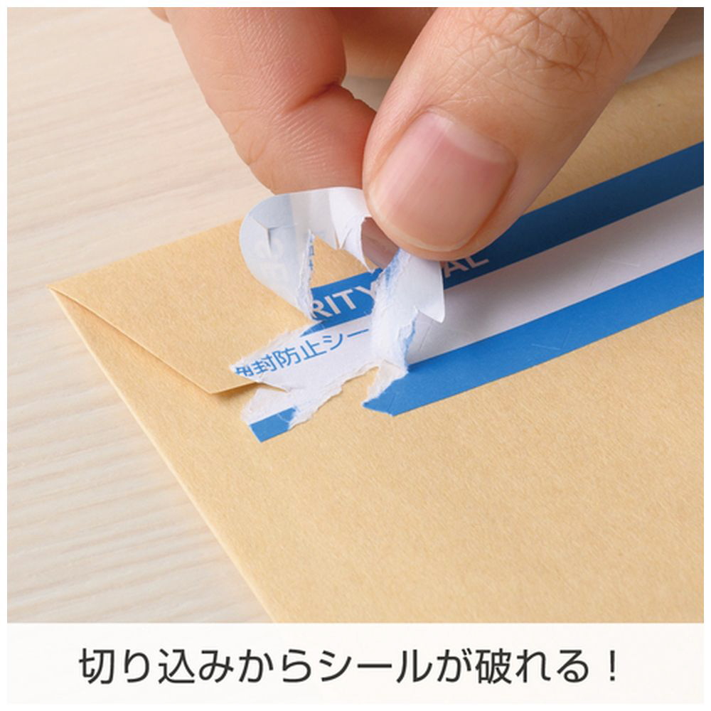 はがそうとすると切り込みから強粘着のシールが破れるので、貼り直しができず、開封したことが判別できます。