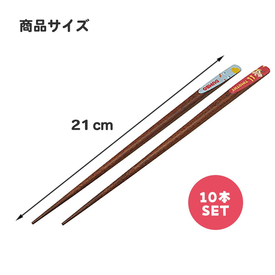 天削げ箸10本セット。使いやすく持ちやすい21cmサイズ。先端部分は、すべり止め加工。複数本あれば世界観は伝わる。一膳ということではなく複数本から好きな2本を選べばいいという新しい切り口です。多くのストーリーがある、ディズニーならではのコンセプトです。自宅用はもちろんギフトやお土産にもちょうどいい商品です。お気に入りのキャラクターのお箸で気分も楽しくお食事を。