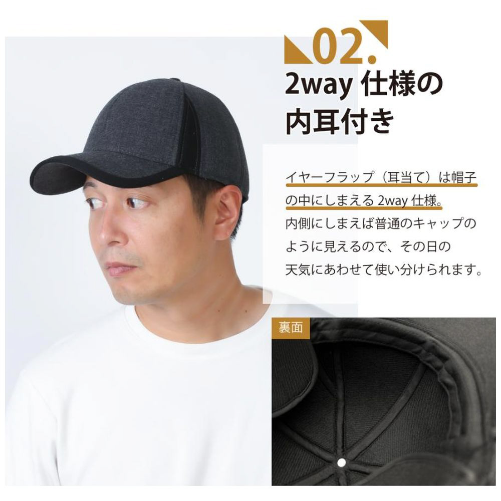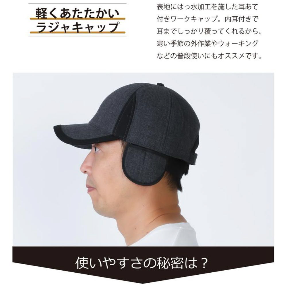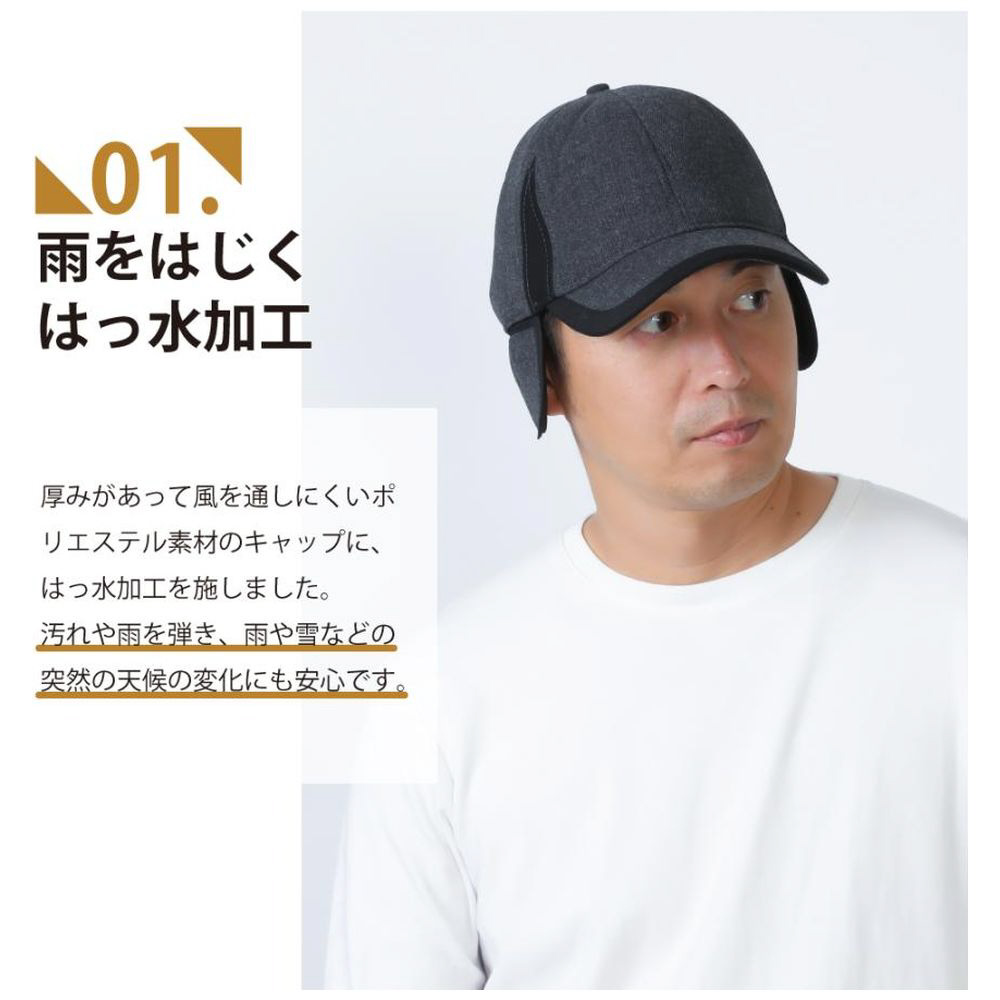 表地にはっ水加工を施した耳あて付きワークキャップ