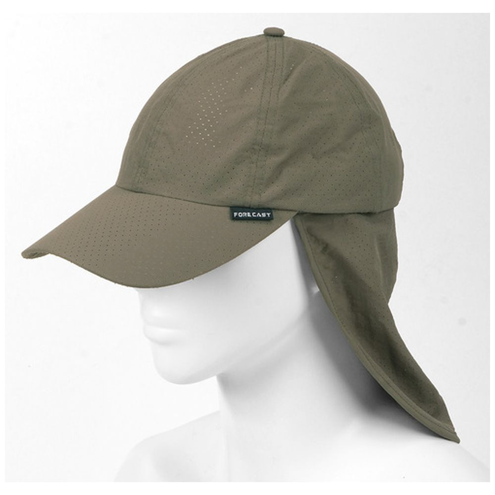 レーザーカットした小さな穴により、通気性が良く、頭の蒸れを軽減するたれ付きキャップです。