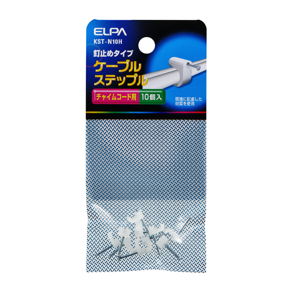 ■材質: ・釘部:スチール・亜鉛メッキ ・クリップ部:ポリエチレン ■使用温度範囲:-40〜70℃ ■適合電線:チャイムコード ■入数:10個