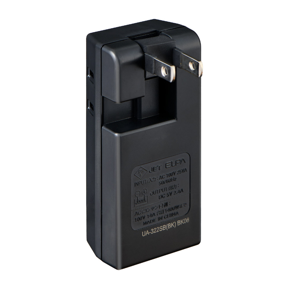 耐雷USBタップ3個口2ポート2.4A UA-322SB(BK) [2ポート]