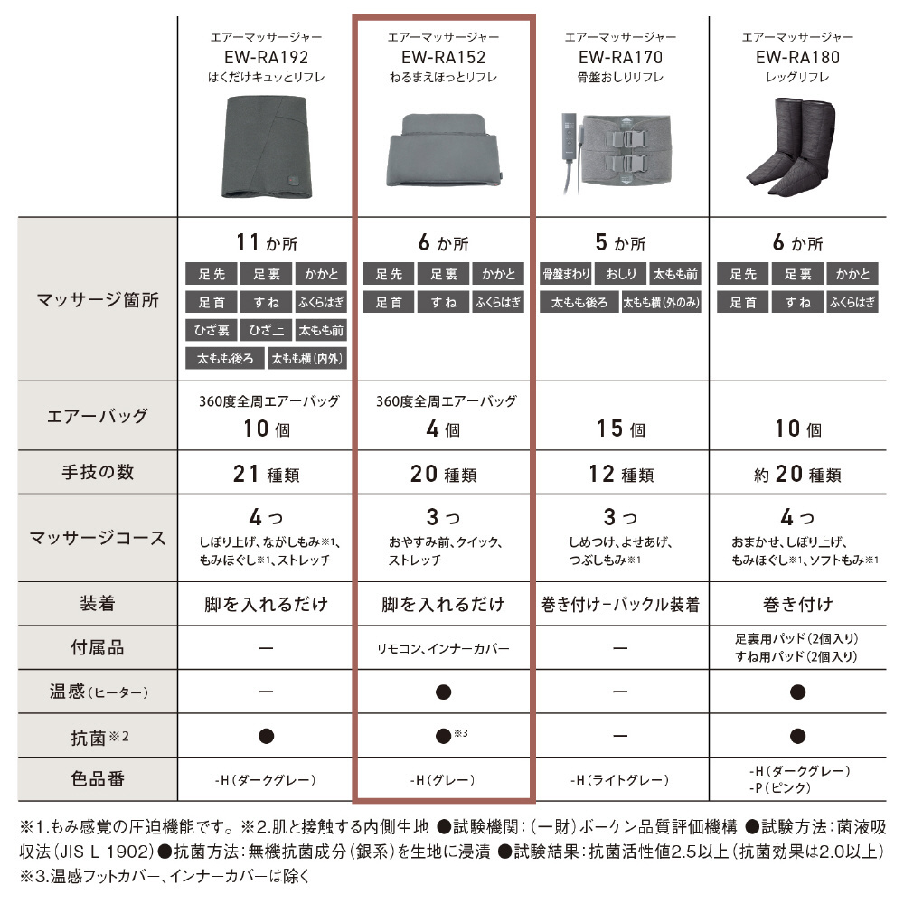 エアーマッサージャー ねるまえほっとリフレ レッグリフレ グレー EW-RA152-H