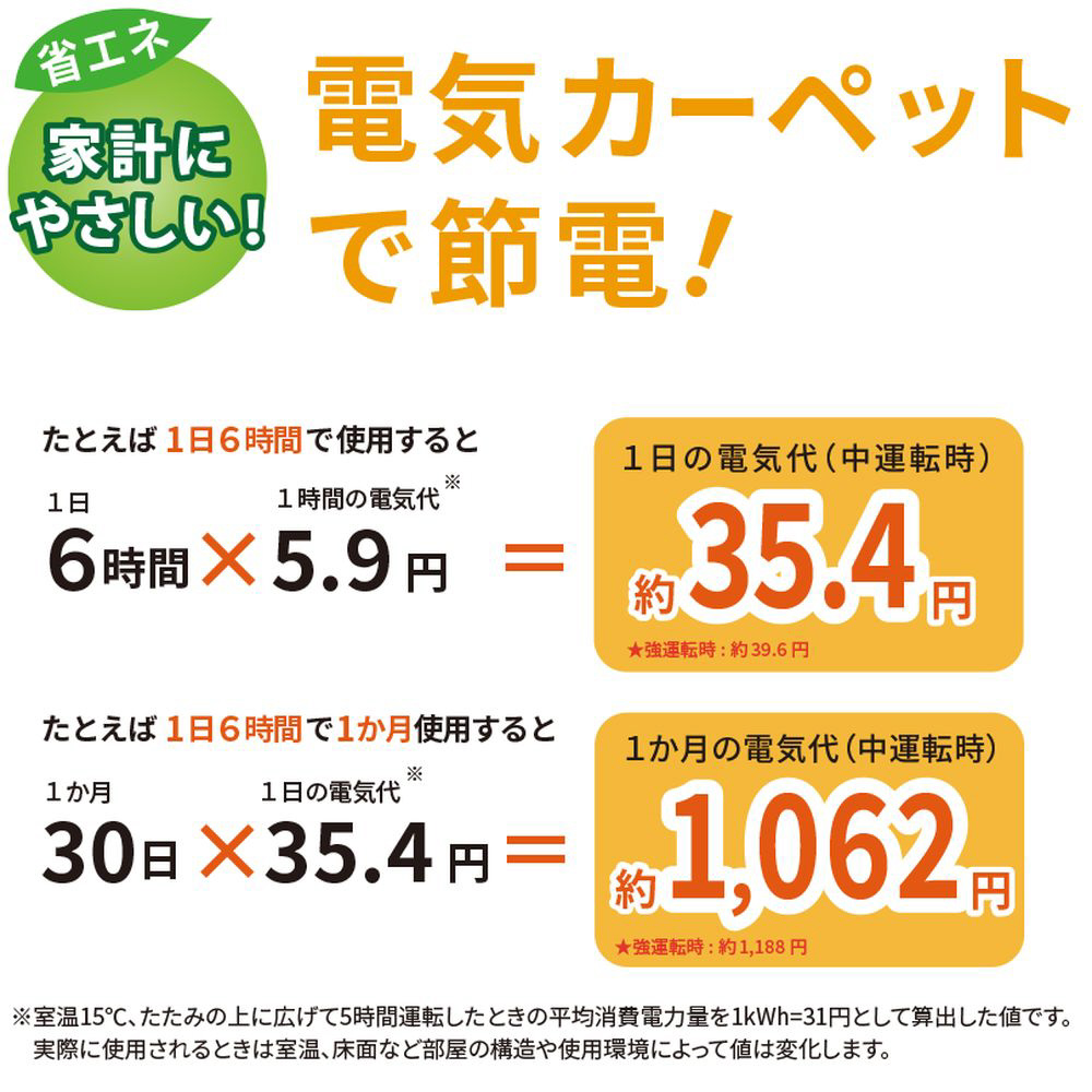 「2畳のカーペットだと大きすぎて、部屋の中央に綺麗に設置できない」という声にお応えして、室内にぴったりのサイズを採用しました