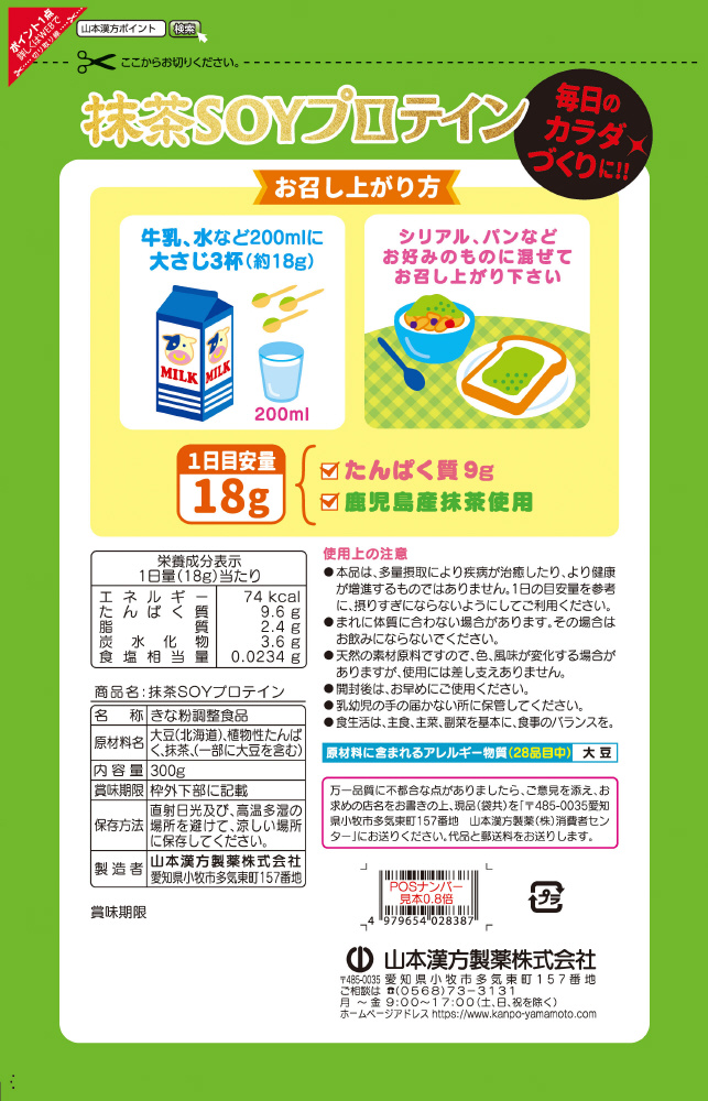たんぱく質9g+九州産抹茶の香り高い風味。