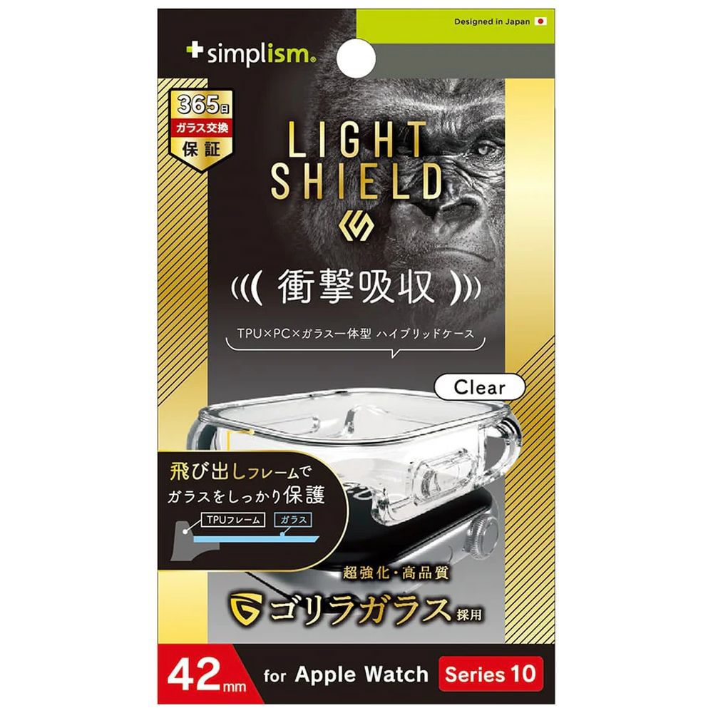 2024年Apple Watch 42mm [LIGHT SHIELD+] 衝撃吸収 ゴリラガラス 高透明 ガラス一体型TPUケース クリア TR-AW2443-GLLD-GOCCL
