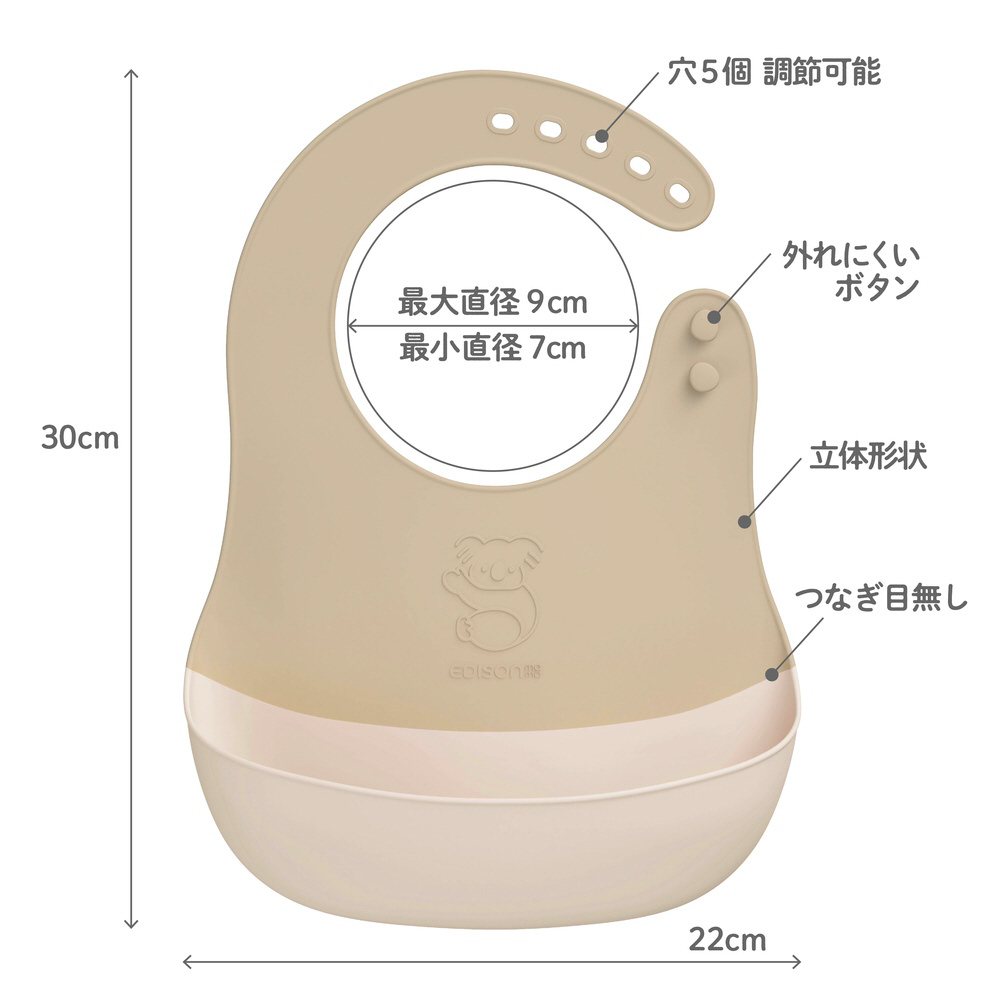 2つの素材を組み合わせ、苦しくなりにくく・食べこぼしをしっかりキャッチできるエプロン