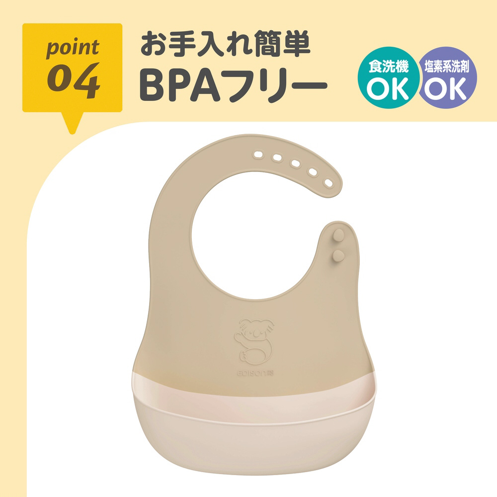 ポケットは、固い素材でしっかりと食べこぼしをキャッチ。