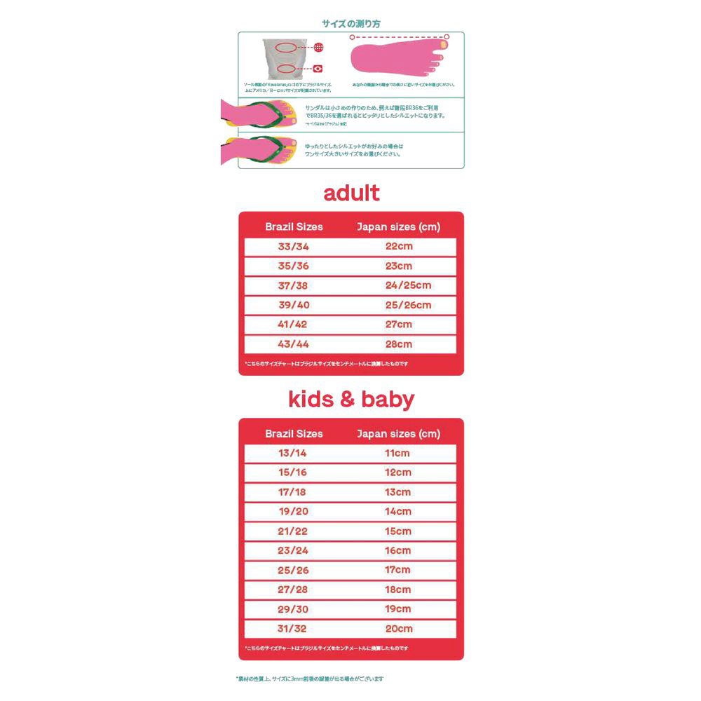 Havauanas(ハワイアナス)のサンダルはブラジル生まれです。ポルトガル語でハワイアンを意味する「 Havaianas ハワイアナス)」。日本の伝統的な藁草履 わらぞうり をヒントに、高品質の天然ゴムを使用し、ファッション性の高いデザインに仕上げられたサンダルが 1962 年に誕生しました。ハワイアナスを象徴するソールに配された、ライスシェイプのエンボス加工も日本の伝統に着想を得ています。