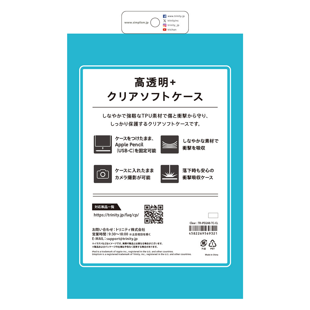 iPad mini(A17 Pro / 第6世代)用 衝撃吸収 TPUケース クリア TR-IPD248-TC-CL