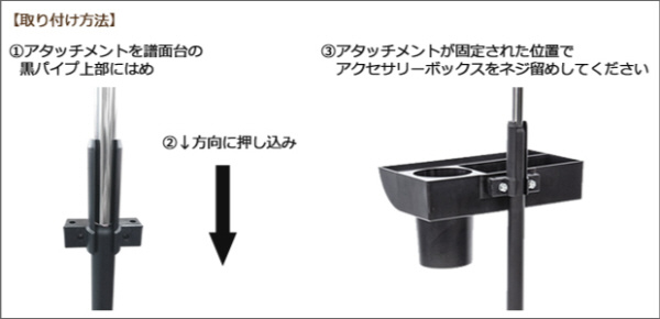 マンハセットの譜面台に取り付けられるアクセサリーボックスです。