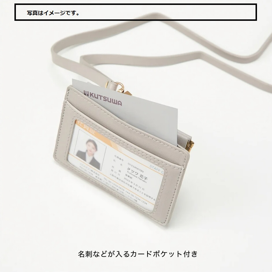 ・本体サイズ:H80×W110×D8mm、60g(ストラップを除く)・ストラップ長さ:84cm・包装サイズ:(ヘッダー台紙、透明袋)H150×W110×D20mm、76g・材質:合成皮革(PVC/PU)、ポリエステル、PVC、鉄
