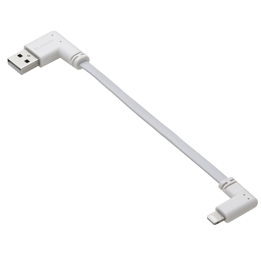 iPhone 充電ケーブル ( USB-A to ライトニングケーブル ) 短い 0.1m L字 フラット MFi認証 【 Lightning ポート搭載 iPhone iPad iPod AirPods 対応 】 モバイルバッテリー 向け ホワイト MPA-UALLL01WH