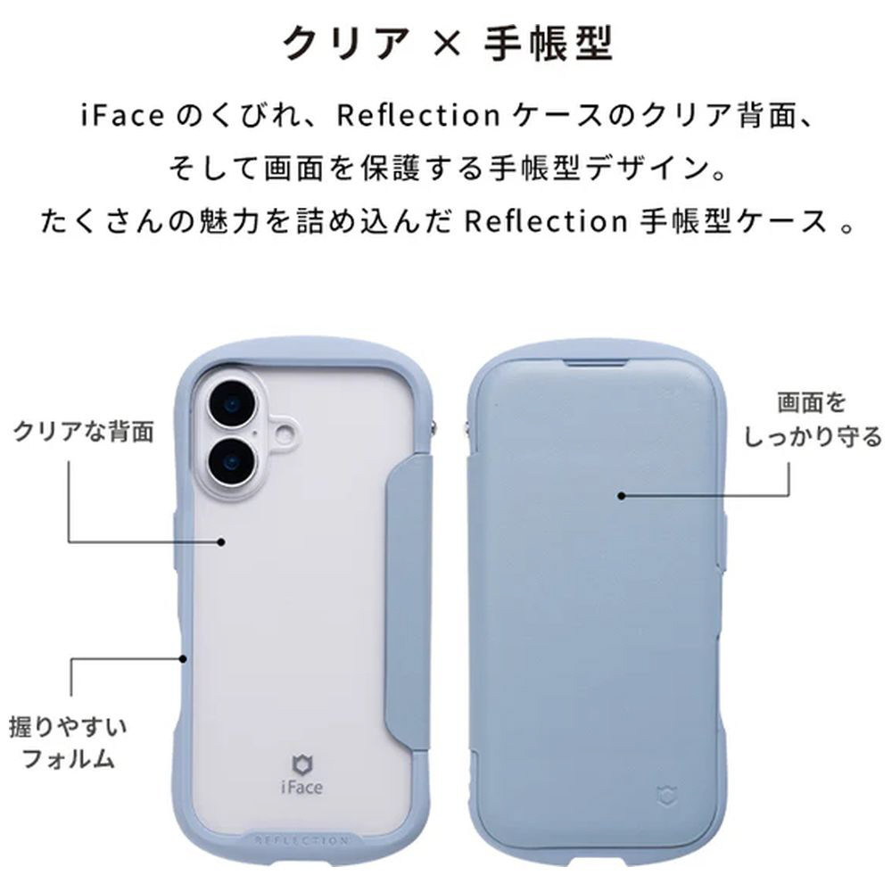 iPhone 16(6.1インチ)iFace Reflection ダイアリー ポリカーボネート クリアケース iFace ブラック 41-980293