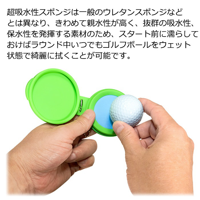 柔軟で弾力性がありソフトな使用感のエラストマー製ケースに超吸水性スポンジを組み込んだ新世代のボール拭きです。