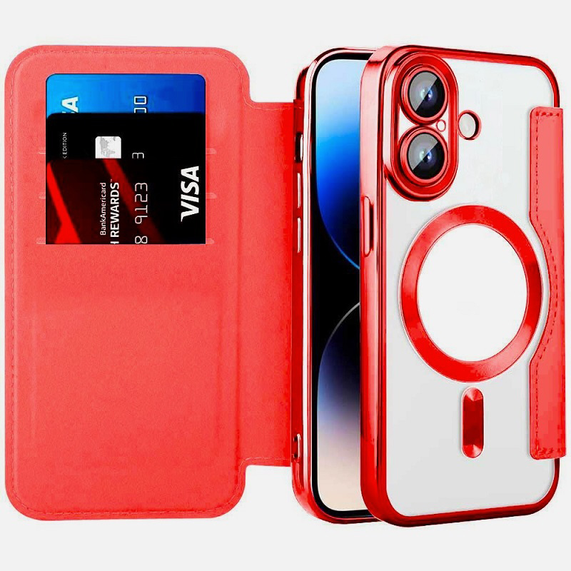 iPhone16Plus MagSafe対応手帳型ケース(レッド)