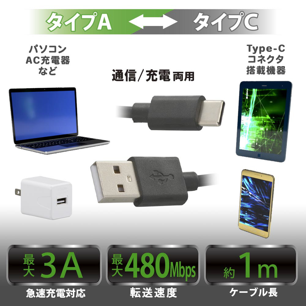 USBケーブル2.0 タイプA-タイプC 1.0m SMT-LC1M-K