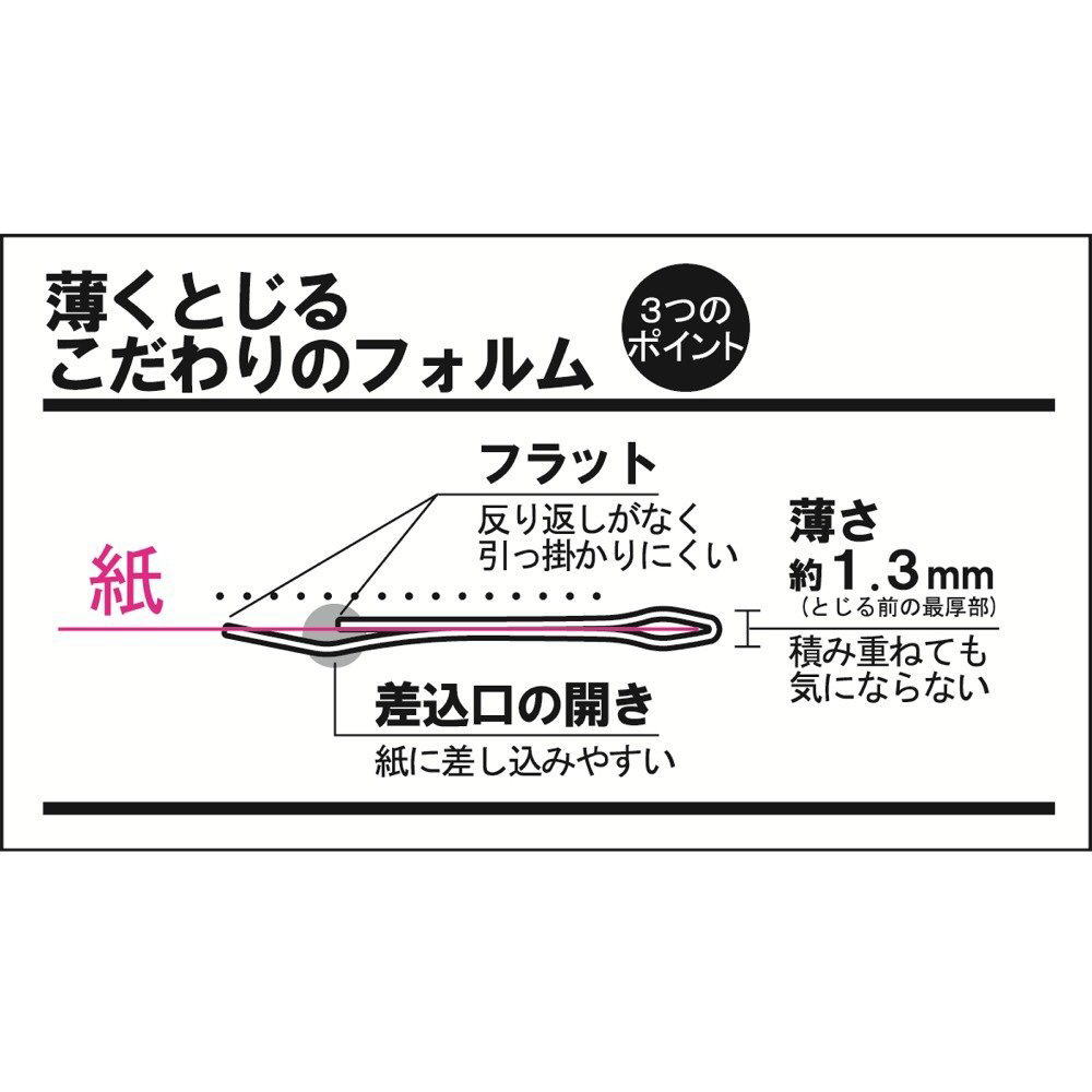 ●書類同士が引っ掛かりにくいフラットな形状のため、書類を積み重ねても厚みが気にならない。