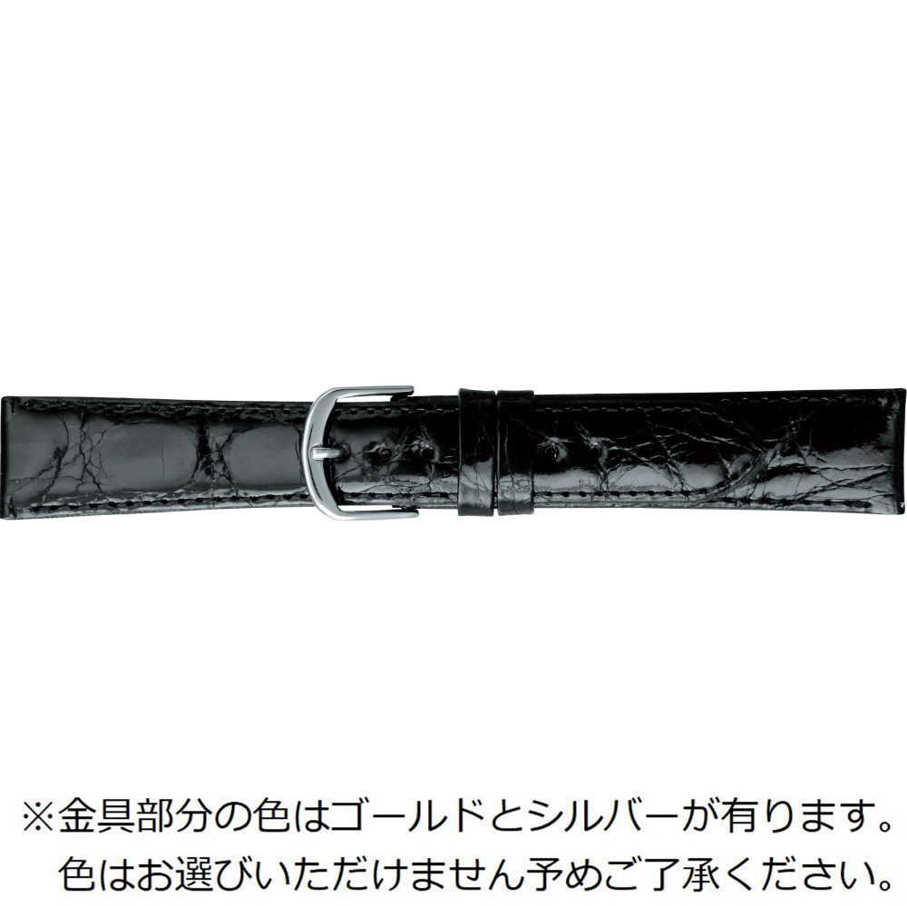 時計バンド ワニ革(カイマン) 撥水 かん幅18mm 美錠幅16mm 【金具色指定不可】 ブラック (シャイニング) BWE129AP