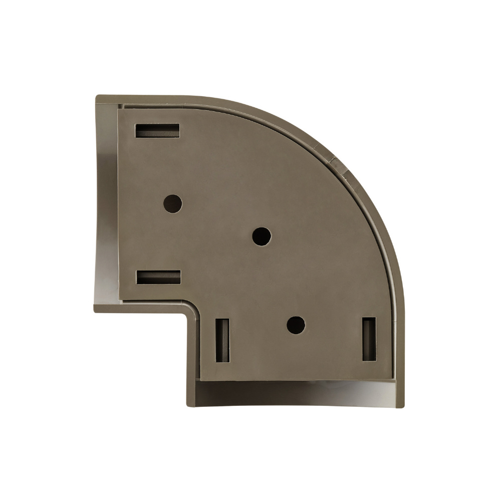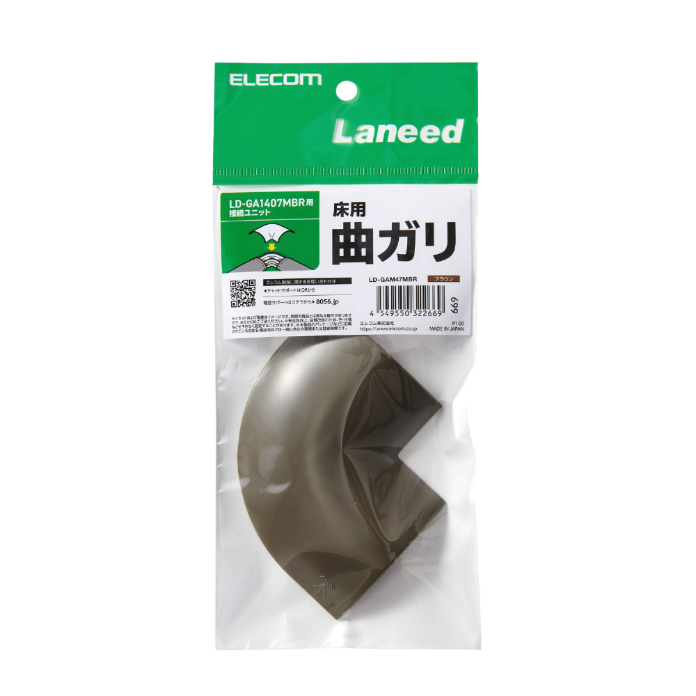 基台付きで、カバーはワゴンモールの蓋の上からかぶせるだけ。床配線の際のケーブルを保護し、すっきりと収納できる床用モール(LD-GA1407MBR)用のジョイントパーツ(曲ガリ)。