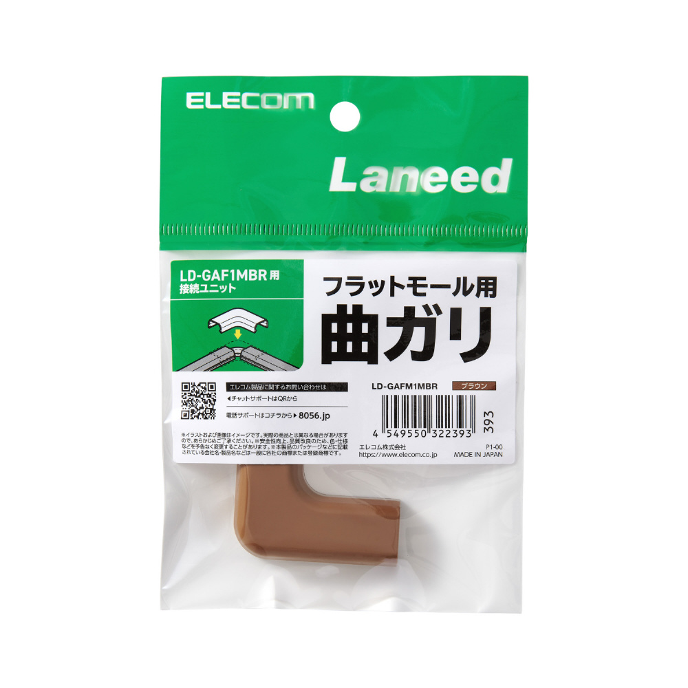 フラットモールの蓋の上からかぶせるだけ。配線の際のケーブルを保護し、すっきりと収納できるフラットモール(LD-GAF1MBR)用のジョイントパーツ(曲ガリ)。