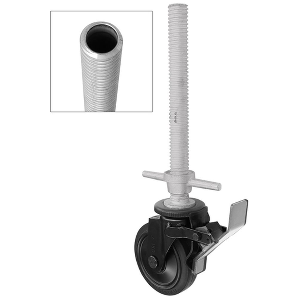 シシク 差し込み式キャスタ 中空型キャスタ・ブラックライン ゴム車輪付 ペダルストッパー 車輪径150mm BKWSJPF150